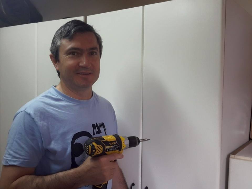 Профессиональный столяр(его данные находятся у нас,все могут обратиться).Человек приятный в общении, об этом говорит его светлая улыбка.